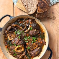 Brun dine 1200 gram osso buco i det resterende smør på panden - synes du der mangler smør, tilsætter du bare lidt mere.